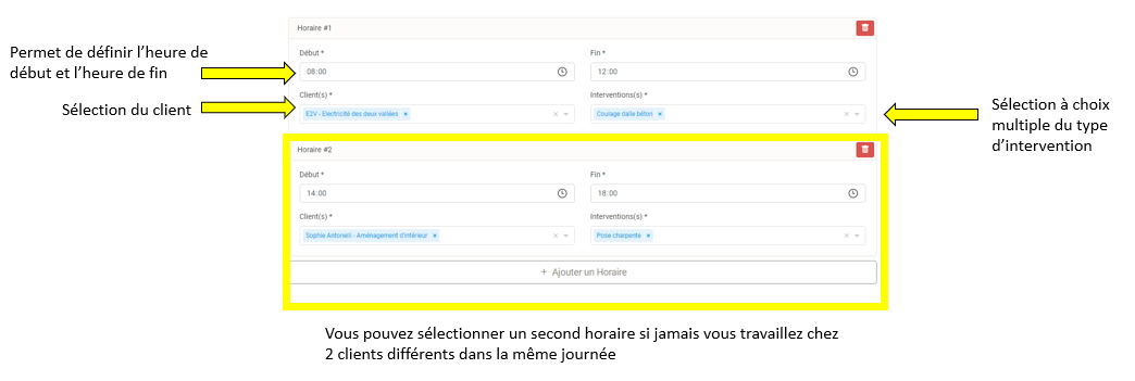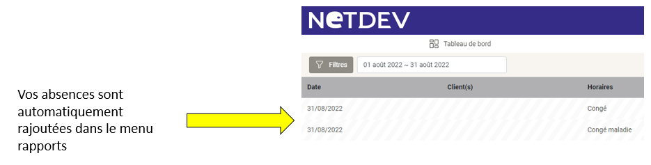 En cliquant sur le bouton congé et maladie vous pourrez enregistrer vos absences.