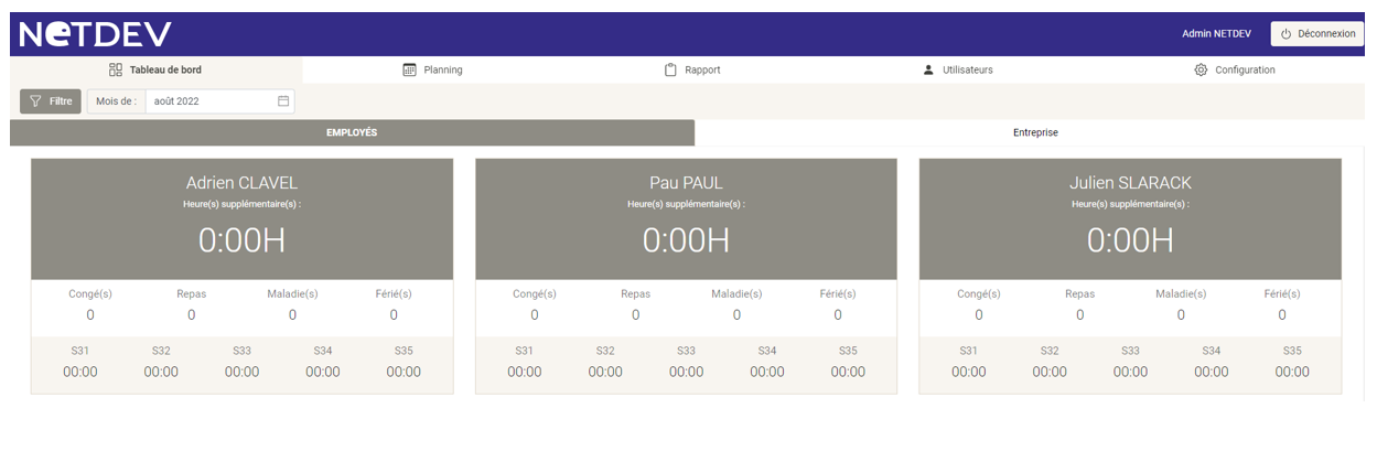 Après avoir cliqué sur CONNEXION vous arrivez sur le DASHBOARD d’accueil.