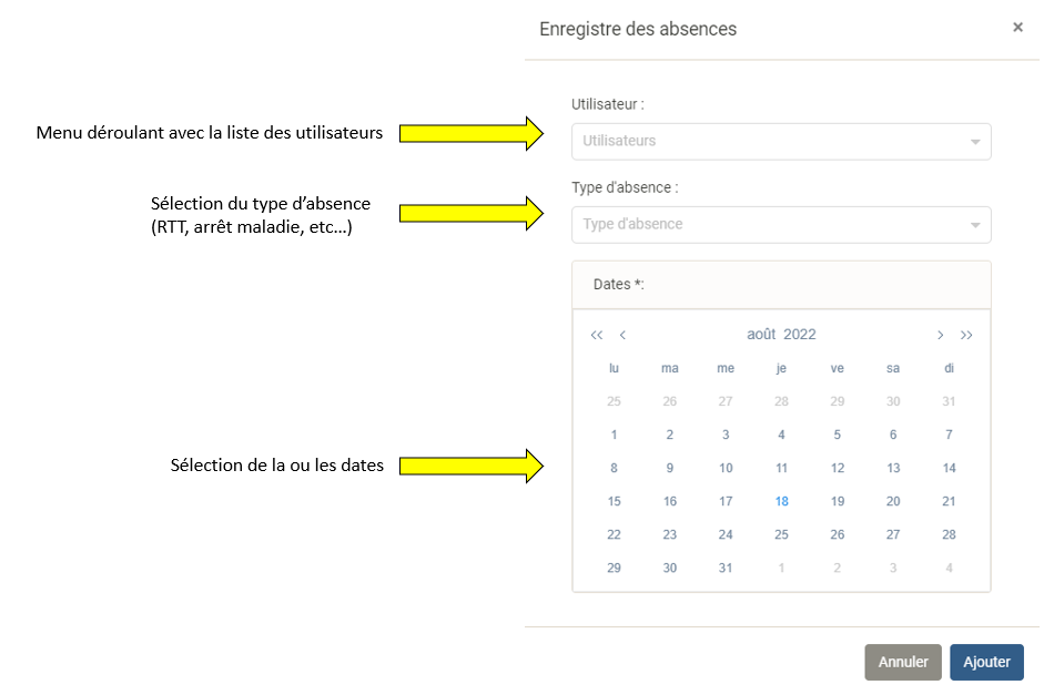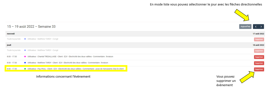 Vous pouvez visualiser votre planning sous forme de liste, a la semaine ou bien au mois.