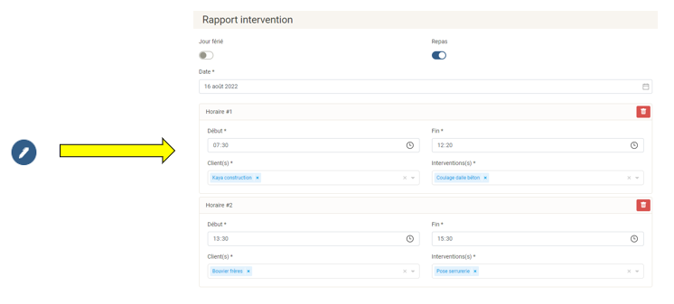Dans la partie « Intervention » vous pouvez ajouter/supprimer vos interventions.